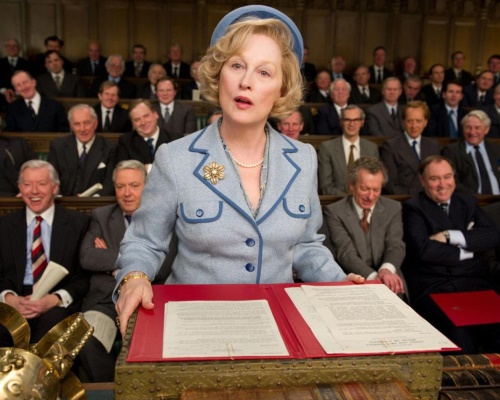 Story o první premiérce v historii Anglie, která na příkladech hornických odborů, hladovku držících teroristů IRA, či znovudobytí Falklandských ostrovů ukázala, že vládnout se dá i bez kompromisů. Nakonec na to baronka Thatcherová sice ve vlastní straně lidově řečeno dojela, ale to už je jiný příběh. Samotná britská expremiérka nejdříve snímek s excelentní Maryl Streep (Oscar za nejlepší herecký ženský výkon v hlavní roli) odmítala, nakonec se však nechala přesvědčit. Po zhlédnutí filmu byla podle časopisu People mile překvapena.