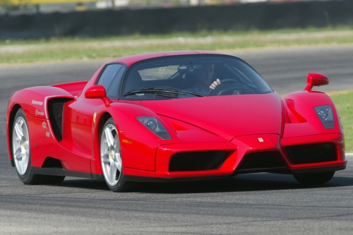 Dvoudveřové kupé z limitované edice 399 + 1 kus s motorem uprostřed, při jehož vývoji byly využity technologie z F1, včetně karbonových vláken. Vůz pojmenovaný po otci zakladateli byl oficiálně představen v Paříži 2003. V rámci testování na okruhu Nardo dosáhlo Ferrari Enzo rychlosti 355 km/h. V roce 2005 vyrobila automobilka jeden exemplář pro papeže Jana Pavla II. Po jeho smrti byl vůz za šest milionů dolarů vydražen, peníze putovaly na konto obětí tsunami v Asii.