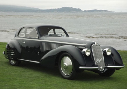 Před válkou bylo vyrobeno 32 kusů, jeden vůz byl sestaven během roku 1941. 2,9litrový řadový osmiválec dával 180 koní. O výhodnosti investice vypovídá názorně výsledek nedávné dražby v Pebble Beach, během které byla verze Pininfarina cabrio vydražena za 4 miliony dolarů. Hvězdou loňského autosalonu Retromobil byla pro změnu Alfa Romeo 8C 2900B Touring Berlinetta z roku 1938.