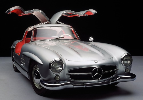 Dvousedadlový sporťák měl premiéru v únoru 1954 na International Motor Sports Show, prodával se ve verzi kupé a roadster. Celkem bylo v letech 1954–1963 vyrobeno 1400 kusů. Mimořádného prostoru se dostalo designérům, jako svého času revoluční bylo zavěšení dveří připomínající křídla racka otevírající se nahoru na střeše. Motor – řadový šestiválec 2996 cm3, výkon asi 200 koní, maximální rychlost 250 km/h.